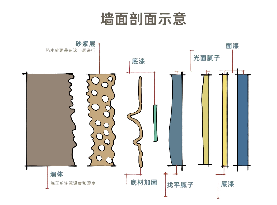這兩種主要就是用來硬化墻面地面基層的界面處理劑,滲透進(jìn)入墻地面基層強(qiáng)化其密實(shí)度,使其更加牢固,粘接力更強(qiáng);如果空間墻面本身就有起砂或者脫粉現(xiàn)象,刷上墻固,后期刮膩子刷油漆能夠更好更牢固的粘接在墻面基層上。