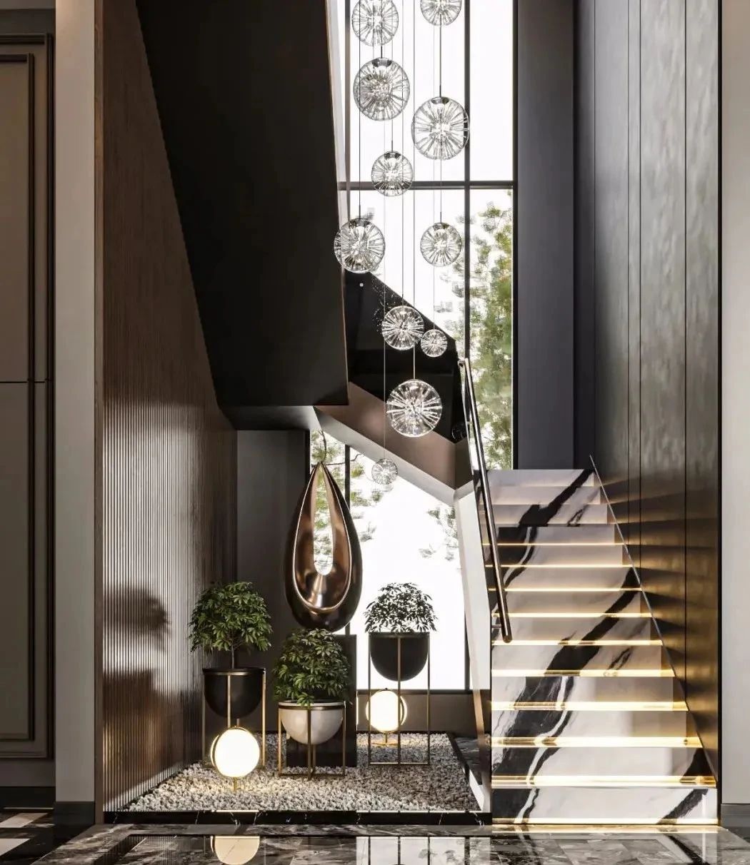 無論是普通的復(fù)式、躍層,還是別墅或者疊墅,都會用到樓梯,那么樓梯作為上下兩層之間的動線中樞,在空間中的地位十分關(guān)鍵。